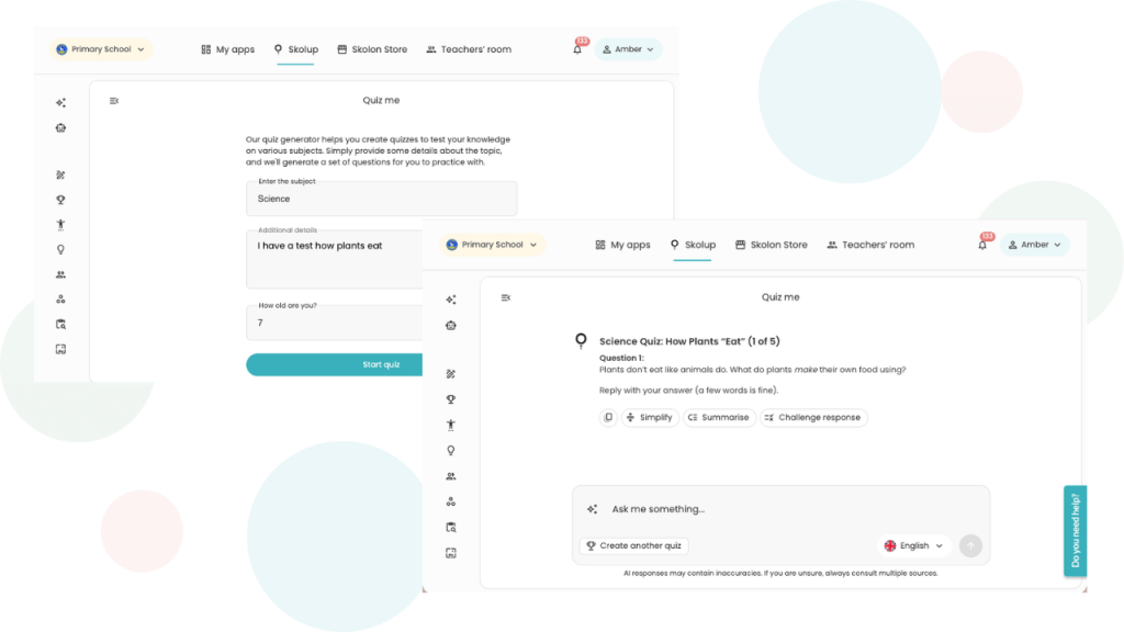 Skolup 2.0 is akin to a walled garden. We have built-in safety rails, like automatic anonymisation of personal data and the immediate blocking of prohibited topics, both to ensure that the focus remains entirely on education.